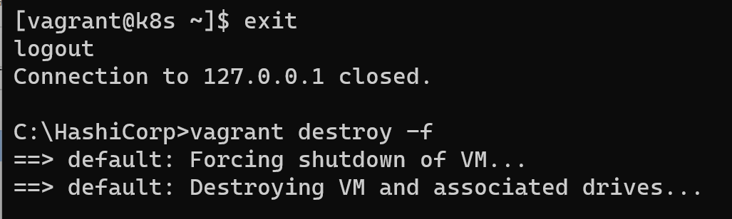 vagrant destroy -f 로 강제로 머신을 삭제해준다.
