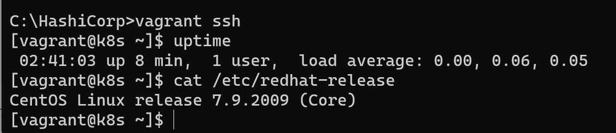 vagrant ssh로 설치왼 CenoOS에 접속한다.