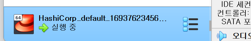 설치가 완료 되면 virtualbox에 아래와같이 가상머신이 생성 된다.