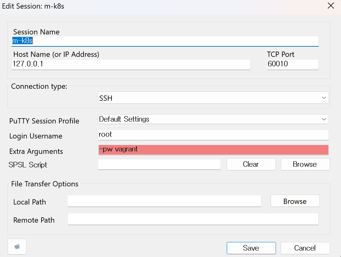설치 후 푸티의 실행파일 위치를 설정해준다.