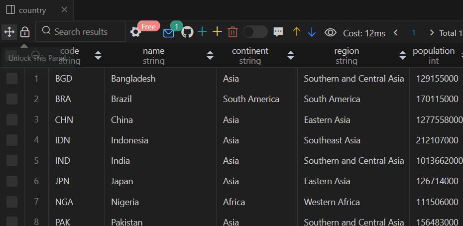 #1 world 데이터베이스의 countrylanguage 테이블에는 국가별 사용 언어 데이터가 들어 있습니다.