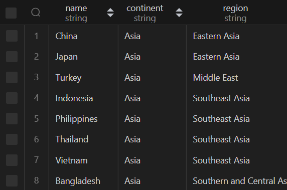 # continent 오름차순 후 region 오름차순 적용