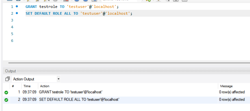 GRANT testrole TO 'testuser'@'localhost';