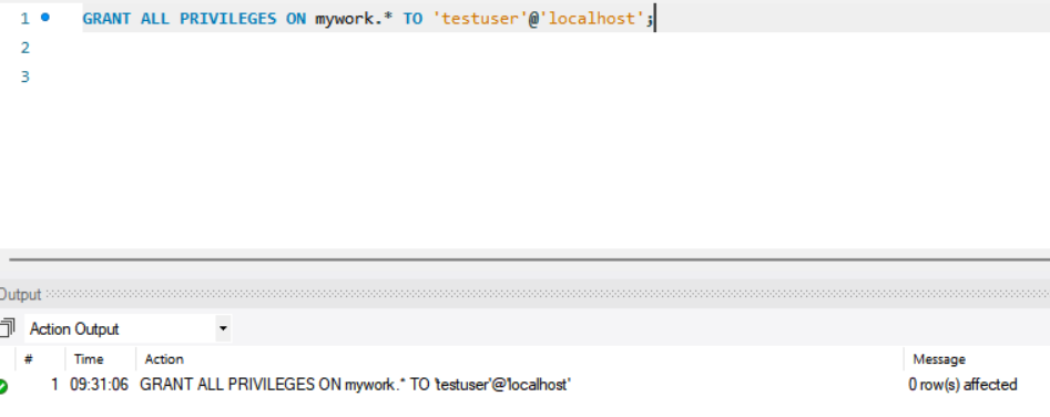GRANT ALL PRIVILEGES ON mywork.* TO 'testuser'@'localhost';
