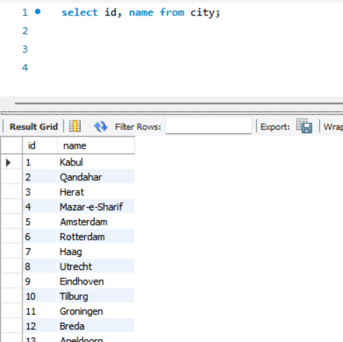 select id, name from city;
