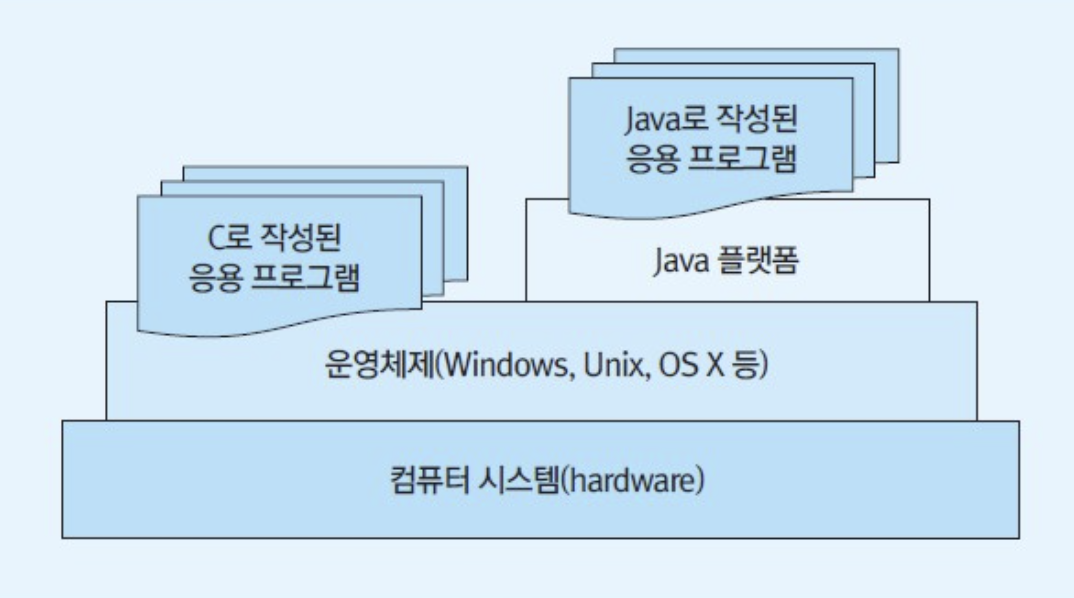 Java 플랫폼이라 부르는 별도의 실행환경이 있기 떄문에 운영체제와 무관하게 Java 플랫폼만 설치되어 있으면 어디에서든 실행이 가능하다. 이러한 특징을 "플랫폼에 독립적"이라고 한다.