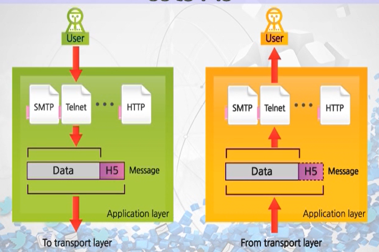 계층화 - 컴퓨터 사이에 대화를 계층화 도입 (10메가용을 100메가용 네트워크 카드 바꿔도 나머지 계층은 그대로 사용한다.)