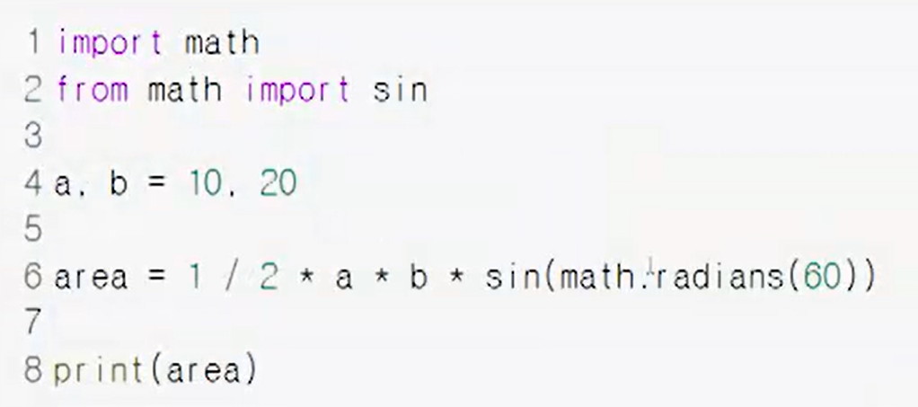 두변 a,b와 끼인각 c인 삼각형의 넓이를 구하는 프로그램