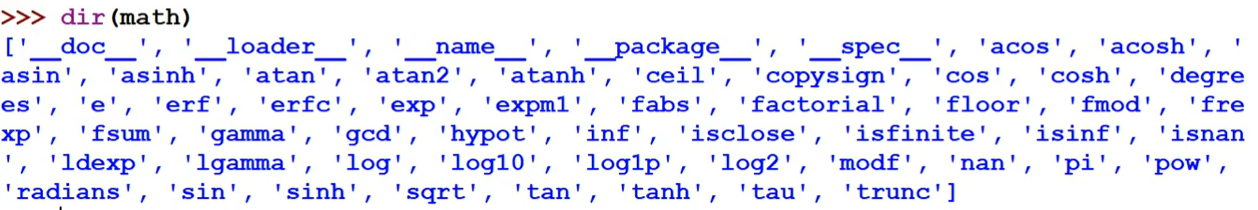 dir 함수 : 네임스페이스에 등록되어 있는 모든 이름들을 리스트로 반환