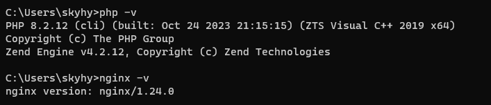 nginx 설치된 폴더로 cmd창을 열어 "nginx"명령어 입력하면 구동 시작.