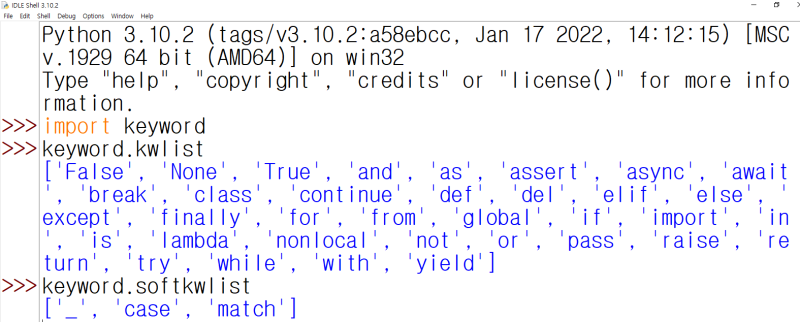 파이썬 키워드 탐색하기