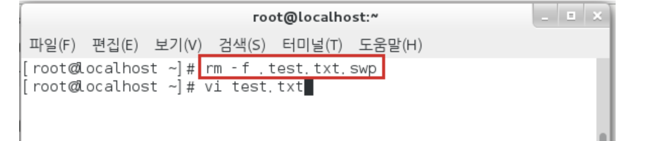 비정상 죵료시 ".test.txt.swp" 파일 생성 되는데 그냥 삭제해 주면 된다.