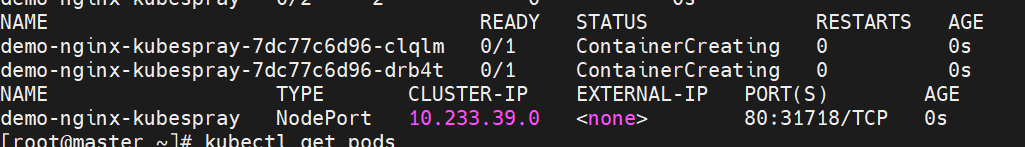 kubectl create deployment demo-nginx-kubespray --image=nginx --replicas=2