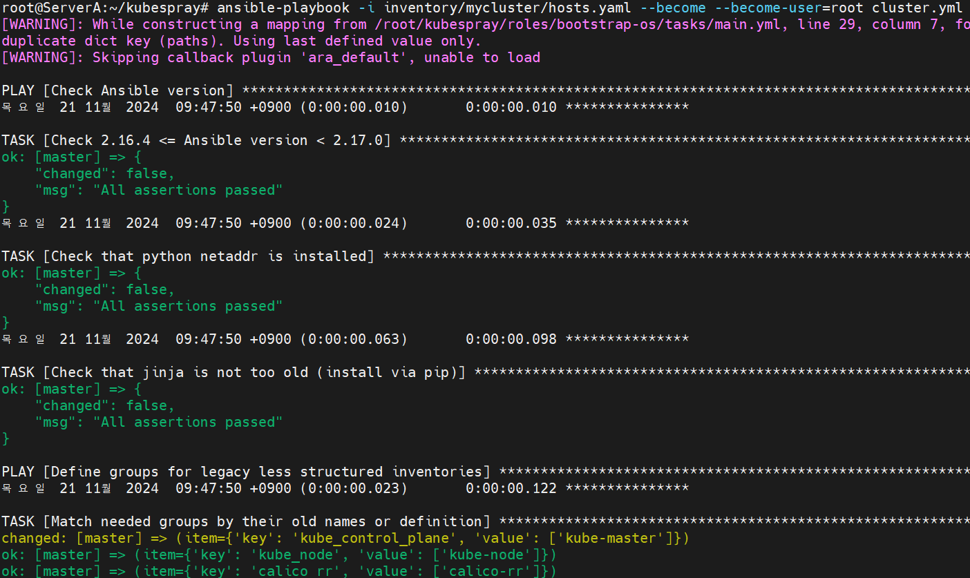 ansible-playbook -i inventory/mycluster/hosts.yaml --become --become-user=root cluster.yml