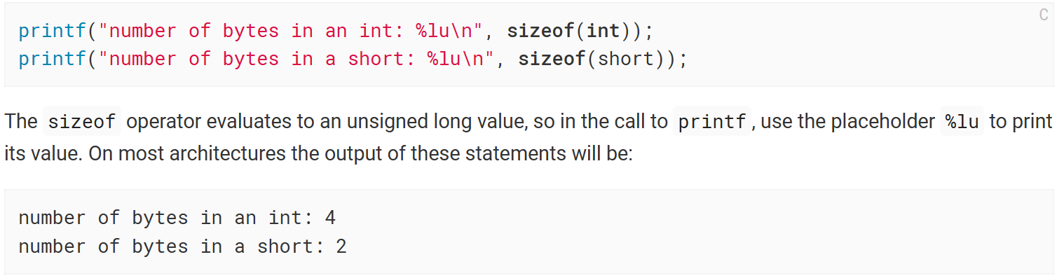 - C: printf 함수는 포맷된 문자열을 출력하며, 형식 문자열의 자리 표시자에 대한 값은 추가 인수로 제공된다.