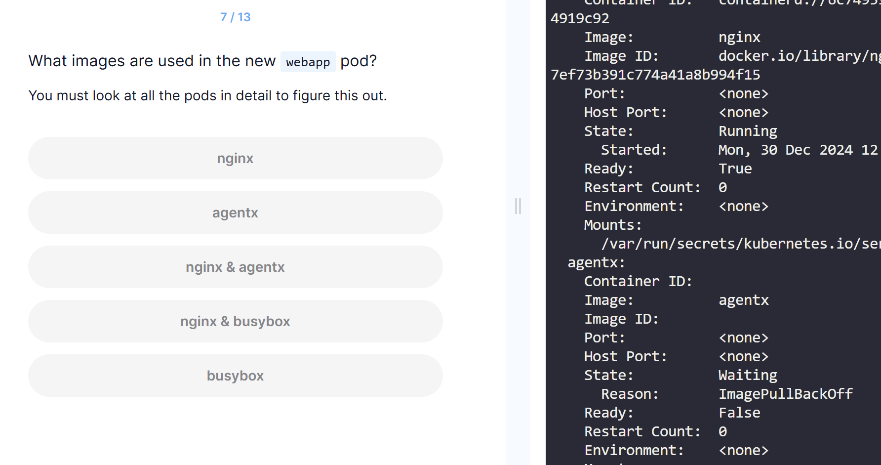 - 예: name: nginx-container, image: nginx.