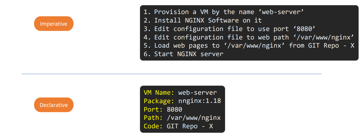 | 작업 방식 | 단계별로 구체적인 명령 실행 | 최종 상태만 정의 |