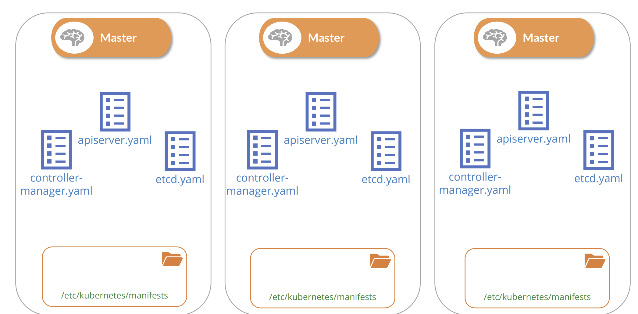 - Kubernetes 클러스터의 초기화 시, API 서버, etcd, 컨트롤러 매니저와 같은 컨트롤 플레인 구성 요소를 Static Pod로 배포할 수 있습니다.