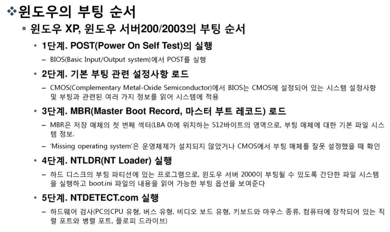 - 윈도우 xp, 윈도우 서버 2000/2003의 부팅 순서