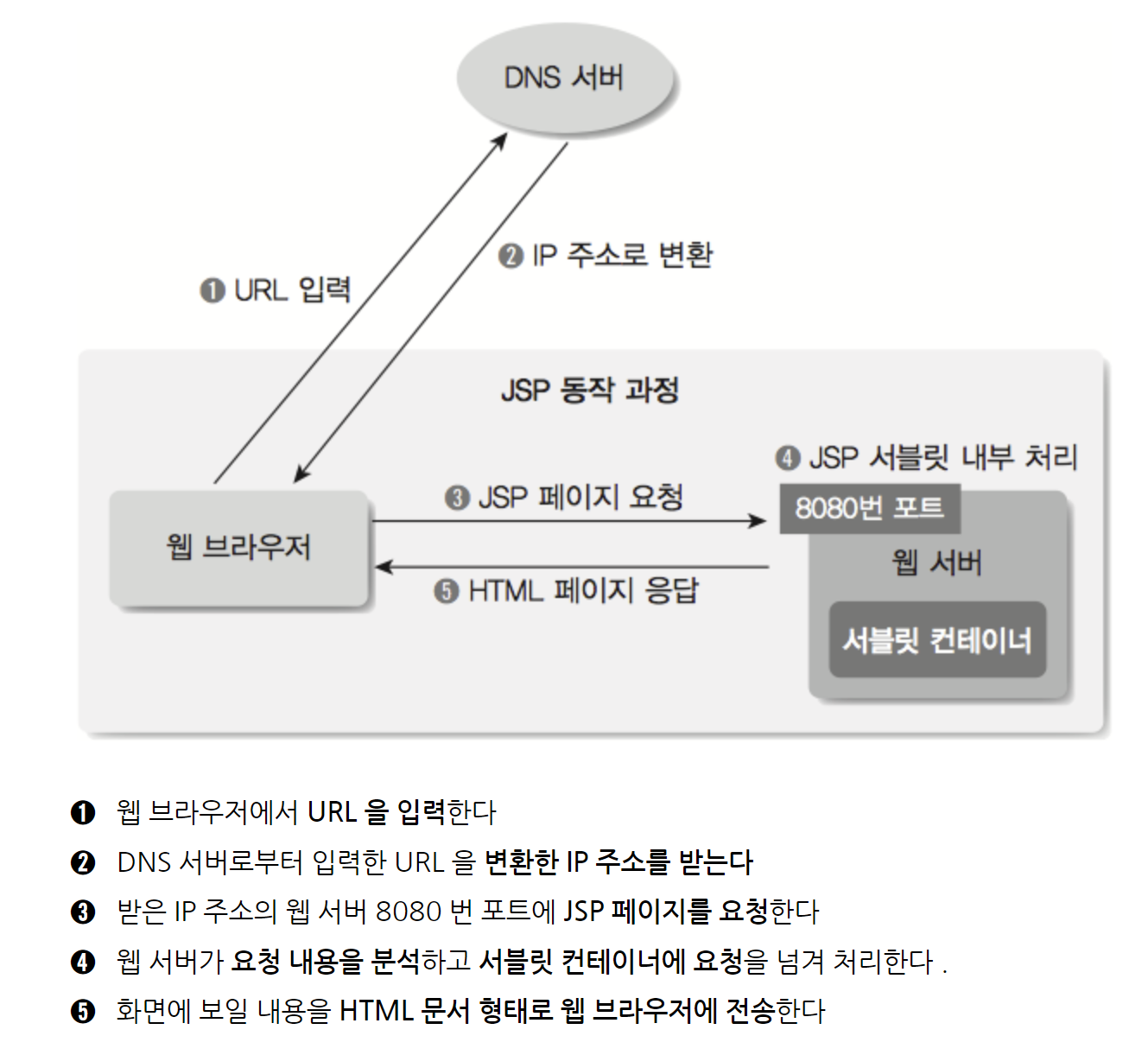 자바 언어를 사용하여 서버측에서 웹 페이지을 생성해 웹 브라우저로 전송해 줍니다.