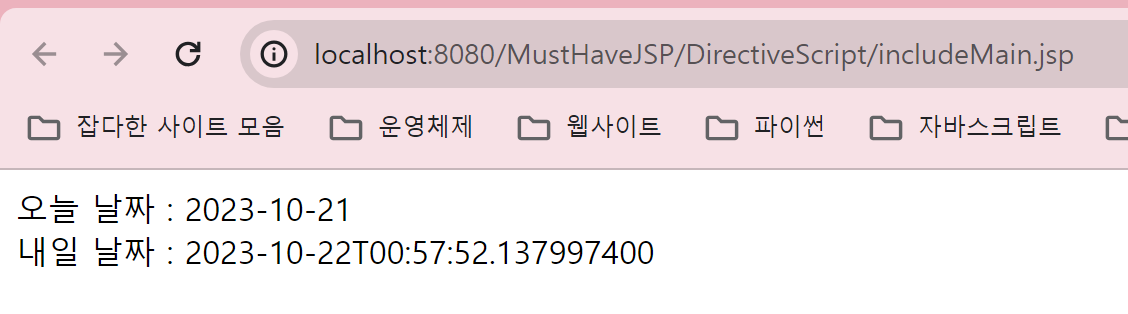out.println("내일 날짜 : "+ tomorrow);//includeFile.jsp에서 선언한 변수 사용